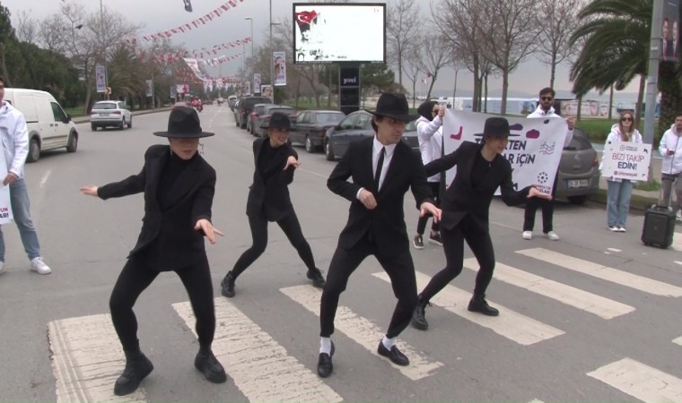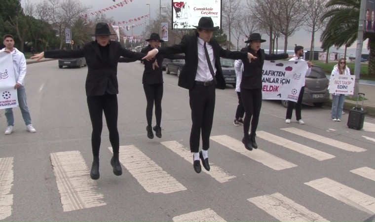Kadıköy Caddebostan’da ’İstanbul Yıldızları Grubu’ İstanbul’un trafik sıkıntısını belirtmek ve trafikte sürücülerin sıkılmaması için Michael Jackson’ın "moonwalk" dansıyla farkındalık oluşturdu.