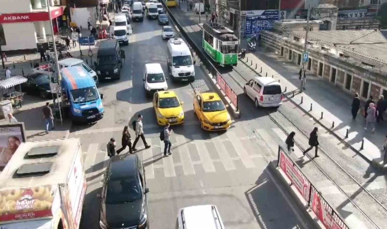 Kadıköy’de Trafik Denetleme Şube Müdürlüğü ve sivil trafik polisleri, Söğütlü Çeşme Caddesi üzerinde dron destekli yaya geçidi denetim noktası oluşturdu. Denetimde yayalara geçiş hakkı tanımayan 3 sürücüye bin 979 liradan toplam 5 bin 937 lira para cezası uygulandı. Yayalara yol vermediği tespit edilen bir ticari taksi sürücüsü çevirilince polis ekipleri ile uzun süre tartıştı. Aracı çekmeyeceğini söyleyen sürücü, “Ceza yersem bu arabayı burada yakarım” diyerek isyan etti. Denetime takılan bir başka motosiklet sürücüsü, “Devletin bundan haberi yok” dedi. Sürücülerin yaya yolu üzerinden geçerken görüntüleri ise dron ile kaydedildi.