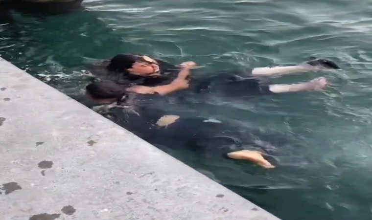 Kadıköy’de sahilde gezen bir kadın, dengesini kaybederek bir anda denize düştü. Boğulma tehlikesi geçiren kadını çevredeki vatandaşlar denize atlayarak kurtardı. O anlar cep telefonu kamerasına yansıdı.
