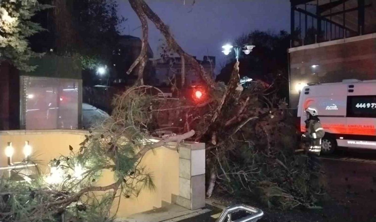 Kadıköy’de aşırı yağış ve rüzgarın ardından bir özel hastanenin bahçesine ağaç devrildi. Olayda ölen veya yaralanan olmadı.