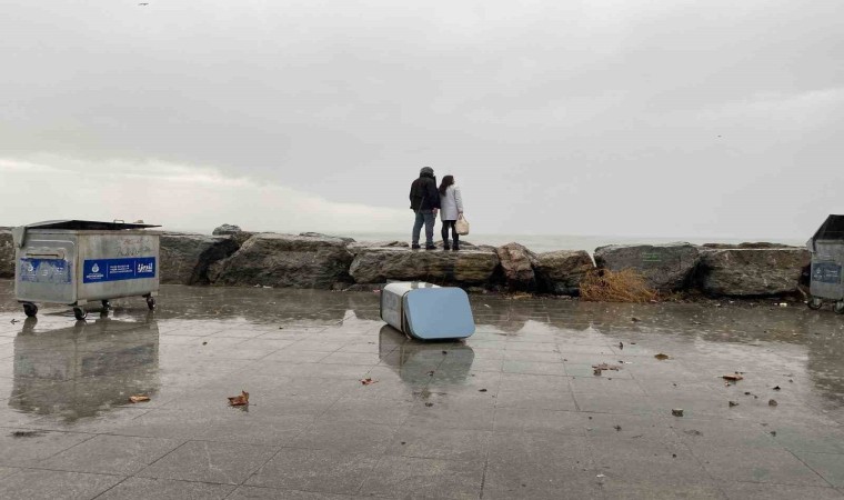 İstanbul’da dün akşam saatlerinde başlayan lodos ve fırtına sabah saatlerinde etkisini sürdürdü. Kadıköy’de sahilinde kayalıklara vuran dalgalar kaya parçalarını ve çöpleri kıyıya attı. Dün gece İstanbul genelinde etkili olan lodos sabah saatlerinde de etkisini sürdürdü. Kadıköy’de lodos sebebiyle dalgalar yükseldi. Yükselen dalgalar sahile vurdu. Denizde bulunan çöpler ve deniz kenarında bulunan kayaları sahile attı. Sahilde dolaşan bazı vatandaşlar ise fırtınada denizi arkalarına alarak fotoğraf çekildi. Sahilde oluşan çöpler belediye ekipleri tarafından temizlendi.