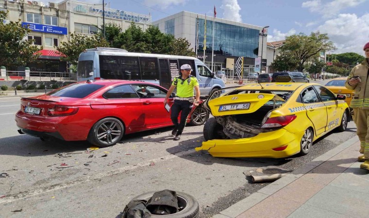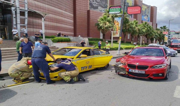 Kadıköy’de seyir halindeki lüks otomobil sürücüsünün kontrolünden çıkarak park halindeki ticari taksiye çarptı. Kazada 3 kişi yaralanırken, araçlar kullanılamaz hale geldi.