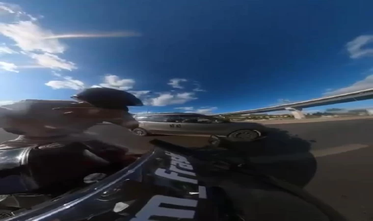 Motosikletli sürücü, tokat atan kişinin peşini bırakmadı. Bu kovalama bir süre devam etti ve sonunda sürücü, motosikletinden indi. Yaya olarak hafif ticari aracı takip eden motosiklet sürücüsü, araca peş peşe yumruk atmaya başladı. Motosikletli, hafif ticari aracı izlemeye devam etti ve akaryakıt istasyonunda sürücü durduğunda, hızla bir uçan tekme ile sürücüye saldırdı. Bu kovalamaca ve kavga, kask kamerasına kaydedildi ve her anı adeta saniye saniye gözler önüne serdi.