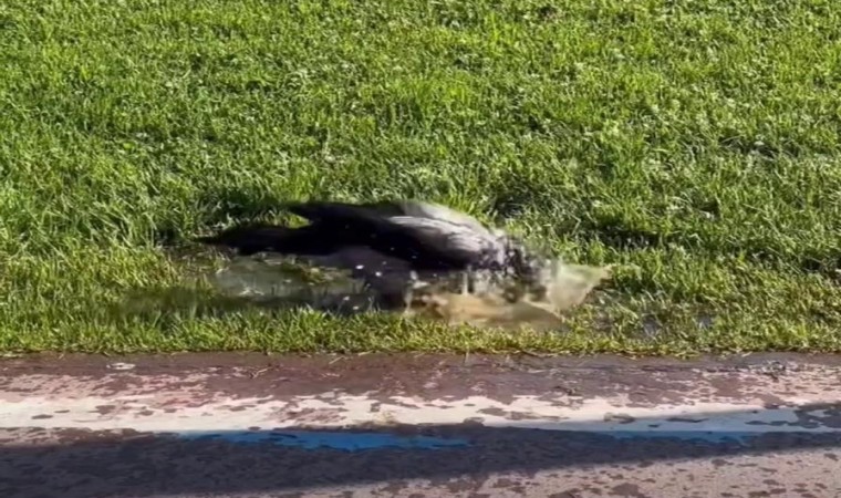İstanbul’da artan sıcaklar sadece insanları değil hayvanları da etkiledi. Kadıköy Moda sahilinde bir grup köpek, serinlemek için denize girdi. Bir karganın ise su birikintisinde serinlemeye çalıştığı görüldü.