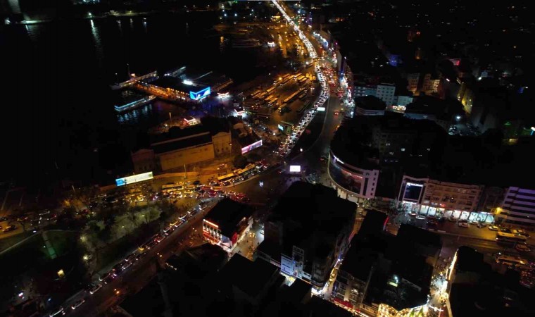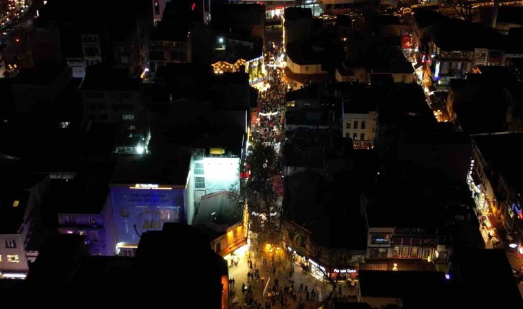 İstanbul’un gözde turistik ilçelerinden Kadıköy’de yılbaşı coşkusunu yaşamak isteyen vatandaşlar, ilçenin sokaklarını doldurarak renkli bir atmosfer oluşturdu. Havadan alınan görüntüler, bölgedeki yoğunluğu gözler önüne serdi. Mağazaların, restoranların ve kafelerin ışıklarıyla süslenen caddeleri kameraya yansıdı. Bölgedeki esnaf tarafından yılbaşına hazırlanan özel ışıklandırılmış bina süslemeleri vatandaşların ilgi odağı olurken trafik ise durma noktasına geldi.