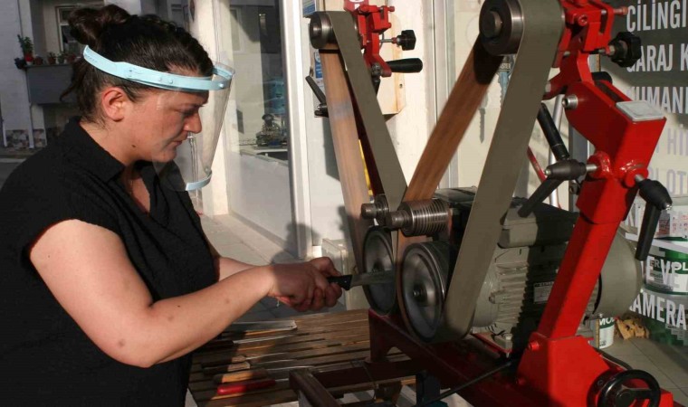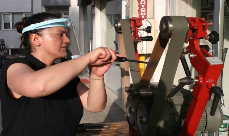 Bilecik’te Kurban Bayramı öncesi kadın bıçak bileyicisini görenler şaşkınlığını gizleyemezken yaklaşık 7 yıldır bu mesleği sürdüren Meltem Çelik, "Bıçakları birbirine sürtmeyin ve bulaşık makinesinde yıkamayın" tavsiyesinde bulundu.