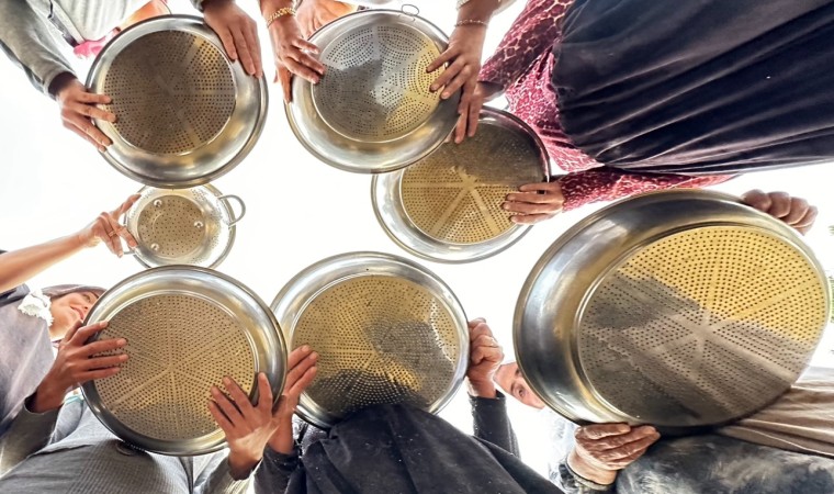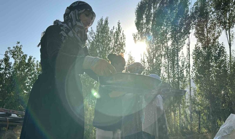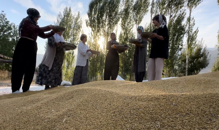 Hakkari’nin Yüksekova ilçesinde bir araya gelen kadın çiftçiler, eski usul yonca tohumu eleme ve ayıklama çalışması yapıyor.