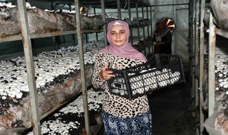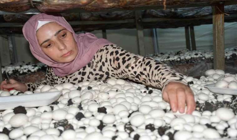 Yaklaşık 5 yıl önce ailesinin geçimine katkı sağlamak için küçük bir sera kurarak mantar yetiştirmeye başlayan 4 çocuk annesi Saadet Seray (37) İlçe tarımın desteğiyle kurduğu 3 büyük çadır sera içinde işini büyüterek ilçe merkezi dâhil, çevre il ve ilçelere mantar satışı yapıyor.