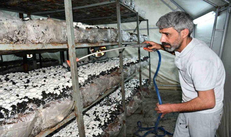 Şanlıurfa’nın Siverek ilçesinde, evinin önünde kurduğu serada mantar yetiştiren kadın girişimci Saadet Seray, yoğun talep ve siparişlere yetişemiyor.