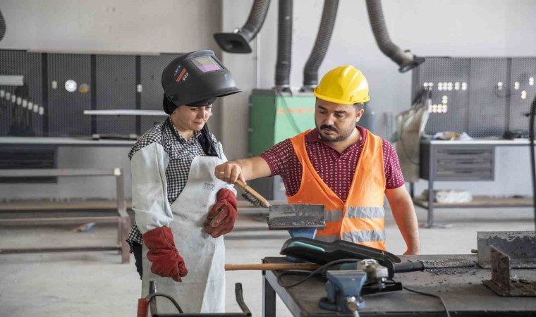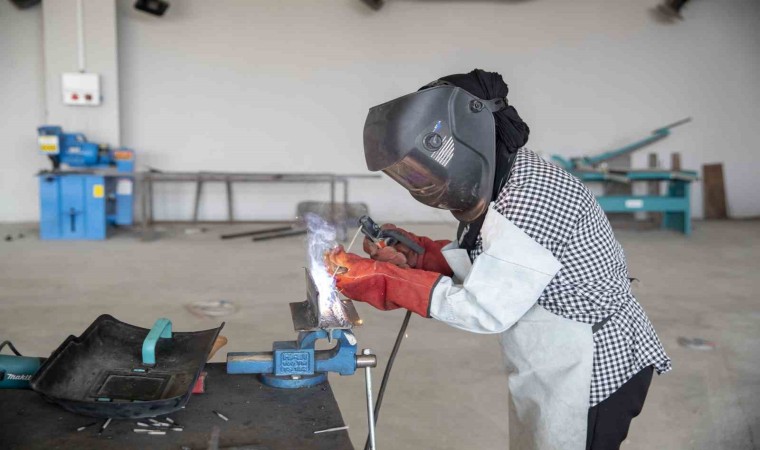 Mersin Büyükşehir Belediyesinin ‘mesleklerin cinsiyeti olmaz’ anlayışıyla hayata geçirdiği meslek edindirme kursları, her geçen gün bir kalifiye eleman daha yetiştirmeye devam ediyor. Sosyal Hizmetler Daire Başkanlığına bağlı olan Tırmıl Sanayi Sitesi’ndeki MERCEK Mesleki Eğitim Merkezinin kaynak atölyesinde eğitim gören tek kadın olan Sevgi Öz, yeteneğiyle kaynak işinin ‘erkek işi değil, ustalık işi’ olduğunu gösteriyor ve mesleklerin cinsiyeti olduğu algısını da bir bir yıkıyor.