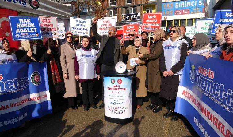 Açıklamasında yerel ve ulusal tüm yetkililere çağrıda bulunan Ayhan, “Üyelerimizin haklarını iade edin ve Van’ın öz evlatlarına karşı olan sorumluluğunuzu yerine getirin. Bizler, her bir kadın ve erkek üyemizin sesi olacağız, hiçbir haksızlığa boyun eğmeyeceğiz. Kadın emeğine, toplumsal cinsiyet eşitliğine ve çalışma barışına verdiğiniz önemi gösterecek şekilde, üyelerimizin işe iade edilmeleri ve mağduriyetlerinin son bulması için bir çözüm üretmenizi istiyoruz. Biz Hizmet-İş Sendikası Kadın Komitesi olarak, kadın dayanışmasıyla emekçilerimizin yanındayız” ifadelerine yer verdi.