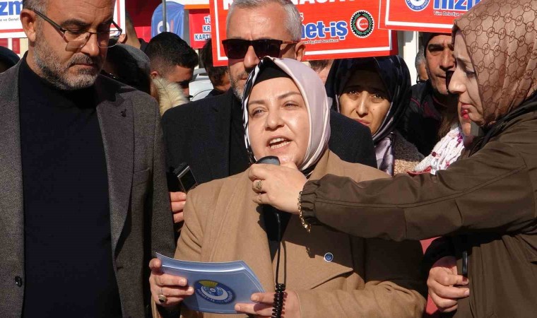 Hizmet-İş Sendikası Kadın Komite Başkanı Hatice Aydın, Van’da DEM’li belediyeler tarafından işten çıkarılan işçilere destek verdi.