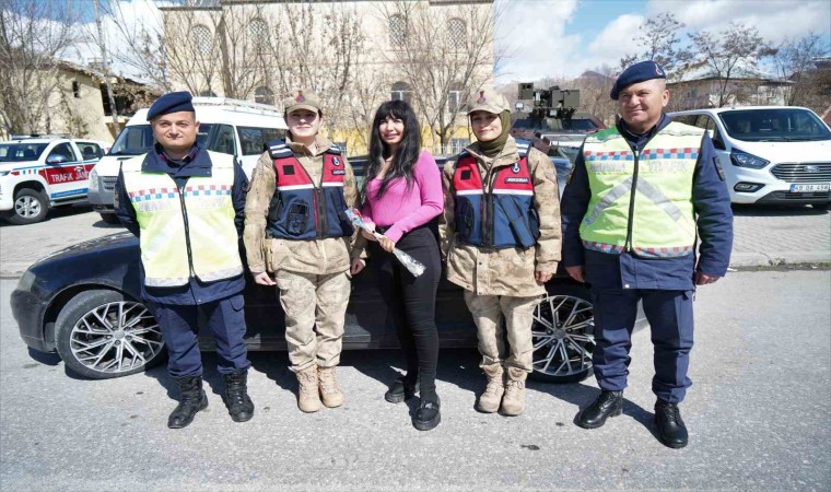 Muş İl Jandarma Komutanlığında görevli kadın komutanlar, 8 Mart Dünya Kadınlar Günü dolayısıyla ziyaret ettikleri köydeki kadınların gününü kutlayarak karanfil dağıttı.