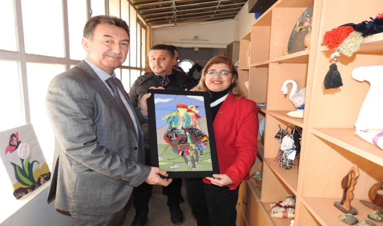 Şehzadeler Halk Eğitim Merkezi işbirliğiyle açılan kurslarda kadın kursiyerlerin yapmış olduğu el emeği ürünlerden oluşan sergiyi açan İlçe Müdürü Gençay, müdür yardımcıları ile sergiyi gezerek kursiyerlerden ve eğitmenlerinden bilgiler aldı.