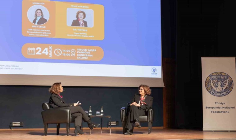 Selçuk Yaşar Kampüsü Konferans Salonu’nda TSKF Kadının Ekonomik Güçlendirilmesi Çalışma Grubu Koordinatörü Dilek Cesur’un moderatörlüğünde düzenlenen toplantıya Yaşar Holding Yönetim Kurulu Başkan Vekili İdil Yiğitbaşı konuk oldu.