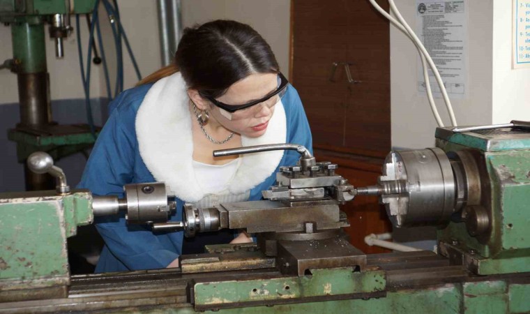 Makine kalıp öğretmeni Fatma Yıldızbaş, atandığı okulda ilk defa kadın makine bölümü öğretmeni gören öğrencilerin çok şaşırdığını söyledi. Öğrencilerin kendisini çok sevdiğini ifade eden Yıldızbaş, “Biz Afyonkarahisar Kocatepe Üniversitesi’nde 30 kişilik sınıfta üç bayan öğrenciydik. Okuldan sadece bayan olarak ben mezun oldum. Daha sonra makine kalıp öğretmeni ne iş yapar bunu araştırdım ve kendi ilgi ve yeteneğime göre bu bölümü seçmeye karar verdim. Başta kafamda tereddütler vardı acaba erkek bölümü olarak mı görülür, bayanlar yapabilir mi gibisinden ama sonra bayanların her işi yapabileceğine inandığım için o bölümü tercih ettim. 2020 yılında KPSS ile Karaman’ın Ermenek ilçesinde bulunan Ermenek Mustafa Demirok Mesleki ve Teknik Anadolu Lisesine atandım. Okula ilk geldiğimde öğrenciler beni görünce bir hayli şaşırdılar. Benim fotoğrafımı çekmek istediler. Şu anda alıştık, öğrencilerin hepsi erkek olduğu için erkek öğrenciler bayan öğretmenden daha fazla çekiniyorlar ve daha utangaç olabiliyorlar. Şimdi hepsi ile gayet iyiyiz. Dediklerimi yapıyorlar, ben de onların istek ve düşüncelerine göre hareket ediyorum. Ermenek’i çok seviyorum” dedi.