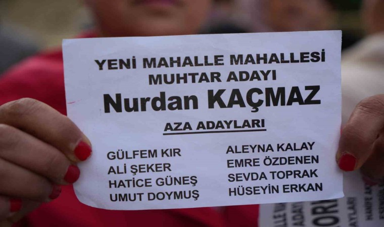 Yaklaşık 50 kişi Nurcan Korkmaz’ın dükkanının önünde toplanarak kendisine destek verdi. Seçimin tekrarlanmasını isteyen mahalle sakinleri, ‘sahte aday Nurdan Kaçmaz’ yüzünden seçimi kaybettiklerini öne sürdüler.