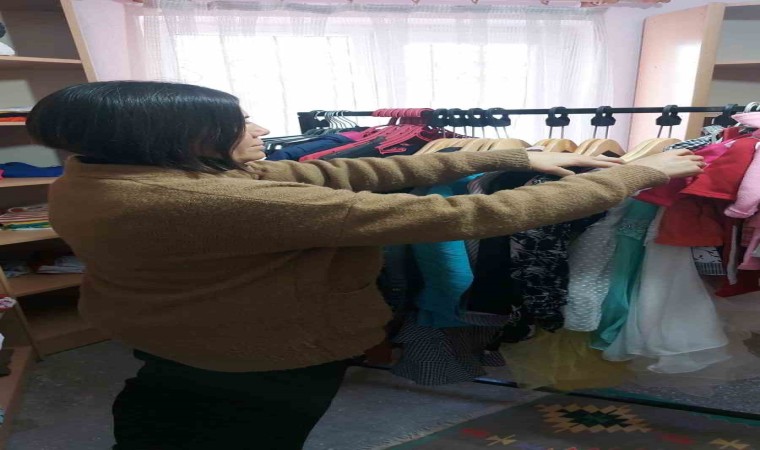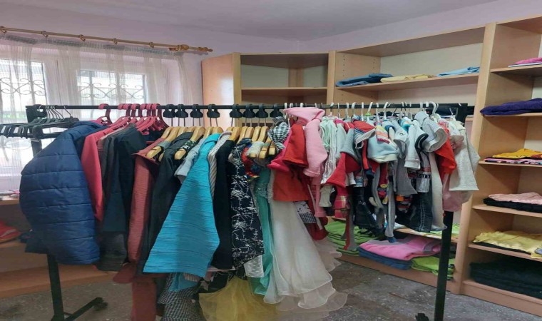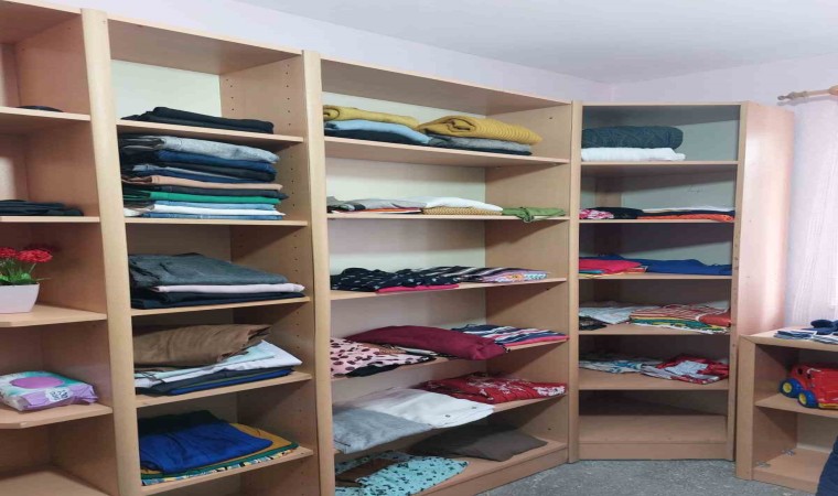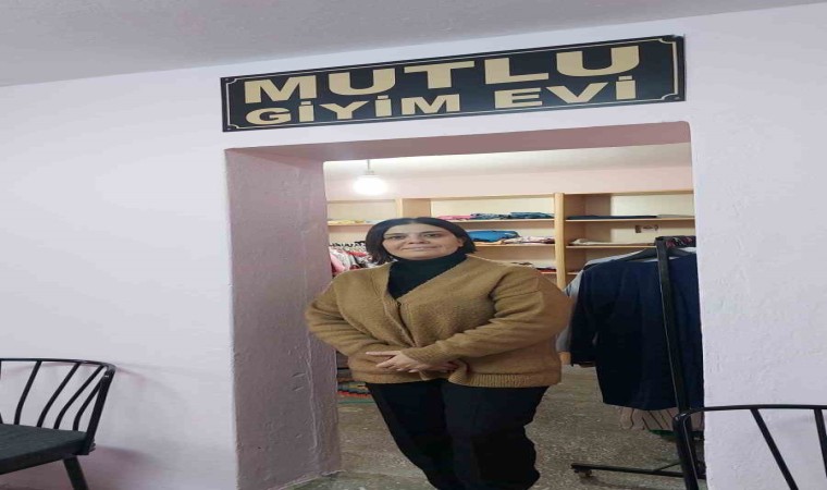 Muhtarlık ofisinin yanında açılan Mutlu Giyim Evi’nde ayakkabıdan gömleğe, kabandan kazağa her türlü bay ve bayan giysileri askılarda ve raflarda dar gelirli ihtiyaç sahipleriyle buluşmayı bekliyor.