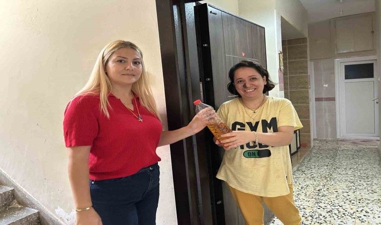 Kanalizasyon sisteminde tıkanıklığa neden olan atık yağların lavaboya dökülmesinin önüne geçmek için atık yağları toplamaya başladığını ifade eden Pirireis Mahalle Muhtarı Hilda Cöcen Koku, "6 Şubat depreminde çok büyük bir felaket yaşadık. Yerin üstü yıkıldığı gibi altı da aynı şekilde yıkıma uğradı ve biz bu yıkımdan sonra mahallede sürekli su taşmaları meydana geliyordu, bu taşkınların sebebi altyapının tıkanmasından kaynaklıydı ve çok sık olmaya başladı. Kanalizasyon açma işlemleri yapılırken ben şunu fark ettim, sadece deprem kaynaklı bir taşma olmadığını aslında lavabolara dökülen atık yağların sebebiyet verdiğini anladık. Bu atık yağlar zaman içerisinde donuyor kanalizasyonu tıkıyor ve tıkadıktan sonra da maalesef ki her yerde taşmalar meydana geliyor. Bu sorunun nasıl önüne geçebilirim diye düşünürken araştırma yaptım ve araştırmada öğrendiğim kadarıyla bu atık yağlar aslında çok değerli bir geri dönüşüm maddesiymiş atık yağların biyodizel ve sabun gibi ürünlere dönüştürülüyormuş. Bunlar toplama kararı alarak bir kampanya başlattım ve mahalledeki ev hanımları başta olmak üzere herkes bu kampanyaya destek verdi, çok güzel geri dönüşümler aldık. Böyle mahallede kapı kapı dolaşarak hem bilgilendiriyorum hem de mevcutta varsa atık yağları toparlıyorum. Bazen muhtarlığa getiriyorlar ve biz muhtarlıkta bu yağları biriktiriyoruz. Son bir haftayla beraber topladığımız yağ yirmi litreyi geçti" dedi.