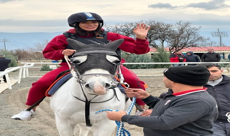 Tiffanny Tomato Bordo Spor kadın voleybol takımı, Elazığ Hipodrom Müdürlüğünde at binip stres attı.