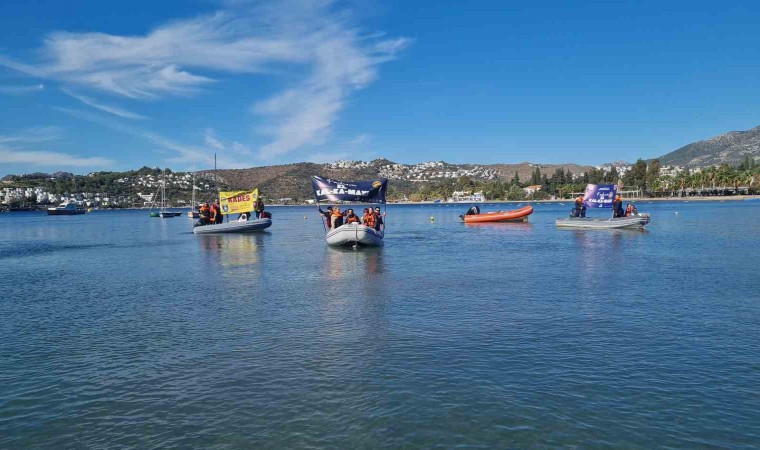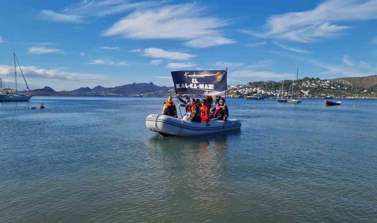 Muğla’nın Bodrum ilçesinde Kadına Yönelik Şiddetle Mücadele Farkındalık etkinliği kapsamında denizde pankart açıldı.