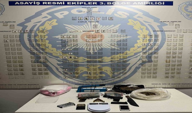 Öte yandan yine polis ekipleri tarafından uyuşturucu madde satışı yaptığı belirlenen bir şüpheli, takip sonucu suçüstü yakalandı. Savcılık talimatıyla şüphelinin adresinde yapılan aramada, 28 sentetik hap, 53 gram metamfetamin, bir miktar kokain, hassas terazi, ruhsatsız tabanca, satışa hazır folyoya sarılı metamfetamin maddesi ve kaçak alkol yapımında kullanılan 178 adet aroma kiti ile 17 bin lira para ele geçirildi. Olayla ilgili gözaltına alınan 2 şüpheli, çıkarıldığı mahkemece tutuklandı.