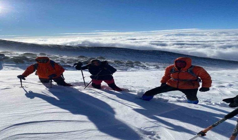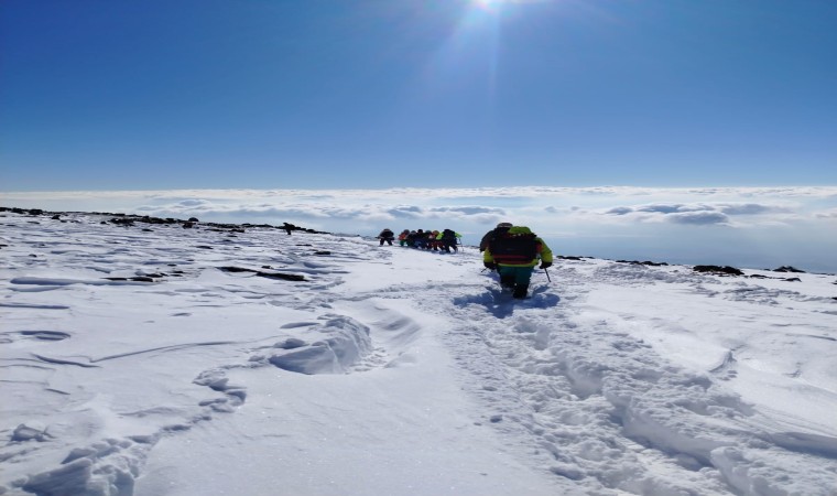Türkiye’nin farklı illerinden gelen 20 kişilik kadın grubu, kadına şiddete dikkat çekmek için Ağrı Dağı’na tırmandılar.