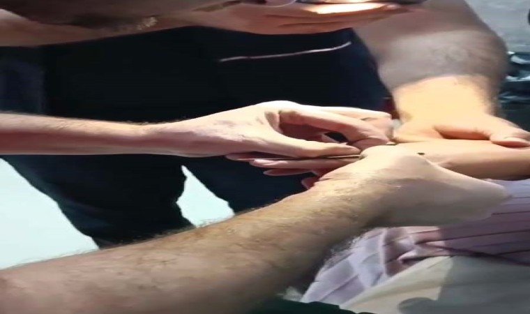 Şanlıurfa’da bir kadının parmağına sıkışan yüzük, itfaiye ekipleri tarafından kesilerek çıkartıldı.
