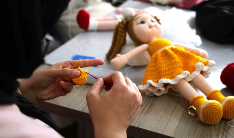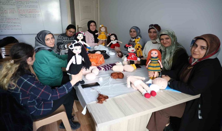 Elazığ Halk Eğitim Merkezi tarafından düzenlenen amigurumi kursuna katılan kadınlar hem sosyalleşiyor hem de yaptıkları bez bebekleri satarak aile ekonomilerine katkı sağlıyor.
