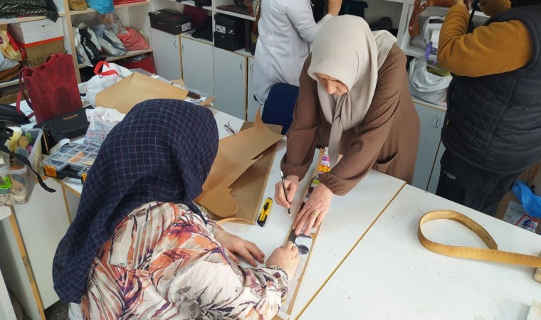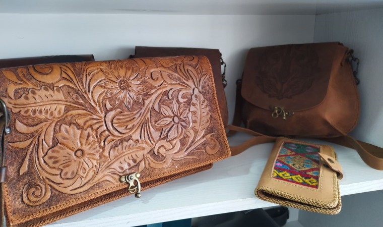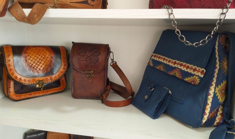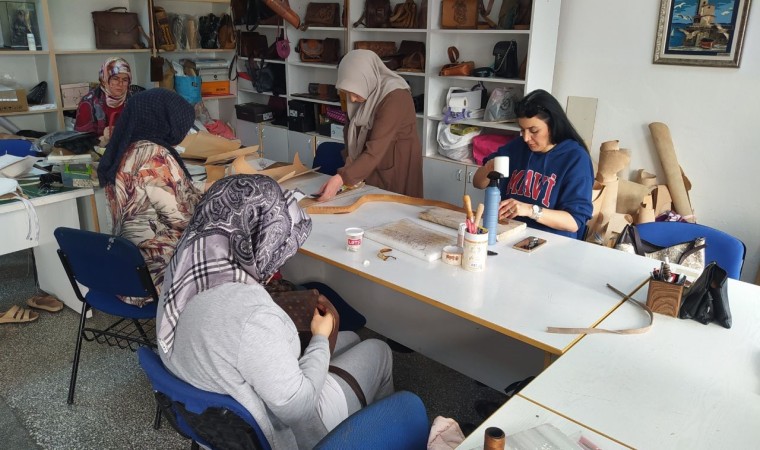 Yozgat Halk Eğitim Merkezi tarafından açılan deri işlemeciliği kursuna devam eden kursiyer kadınlar, işledikleri çanta, cüzdan ve kemer gibi ürünleri satarak ev ekonomisine katkı sağlıyorlar.