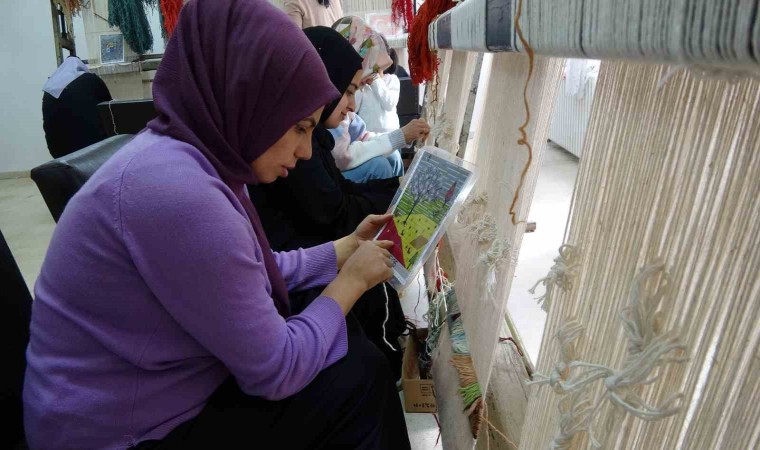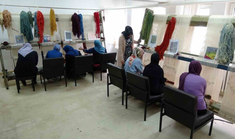 Geçmişte kullanılan motifleri halı tezgahlarında dokuyan kadınlar, hem meslek öğreniyor hem de unutulmaya yüz tutmuş motiflerin gelecek nesillere aktarılmasını sağlıyor.