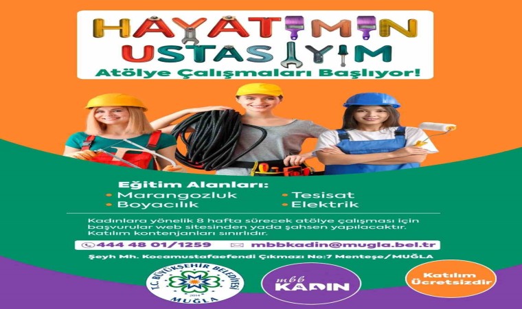 Büyükşehir Belediyesi kadınlara yönelik ‘Hayatımın Ustasıyım’ projesini başlatıyor. 8 hafta sürecek Kadınlara mesleki ve teknik beceriler kazandırılacak. Muğla Büyükşehir Belediyesi ‘Hayatımın Ustasıyım’ projesi ile kadınlara marangozluk, boyacılık, tesisat ve elektrik gibi alanlarda eğitim verecek ve uzman eğitmenler ile teorik bilgilerin yanı sıra pratik uygulamalarda gösterilecek. 8 hafta boyunca devam edecek olan ‘Hayatımın Ustasıyım’ atölye çalışmaları, uzman eğitmenler eşliğinde ve uygulamalı dersler şeklinde kadınlara eğitim verecek. Kadınlar bu atölye ile marangozlukta temel ahşap işleme tekniklerinden, boyanın doğru malzeme seçimine; tesisatta su kaçağı tamirinden, elektrik kablolamaya kadar temel eğitimler alacak.