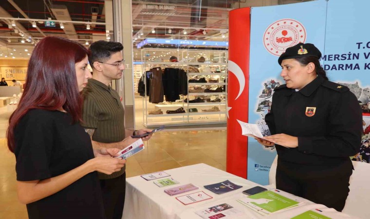 Mersin’de jandarma ekiplerince, kadınlar ’KADES’ uygulaması konusunda bilgilendirildi.
