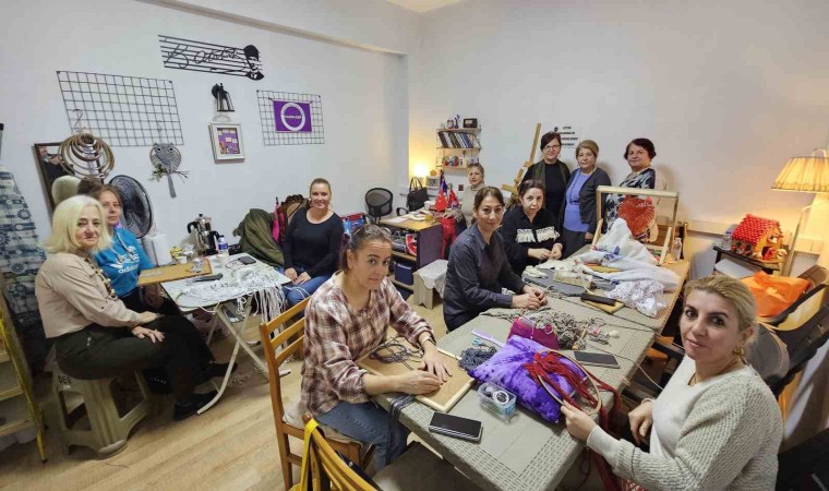 Balıkesir’in Bandırma ilçesinde, emekçi kadınlar el emekleriyle hazırladığı ve el sanatlarının kaybolmaması adına ev bütçelerine destek olmak için Kadın-Der Derneği Başkanı Esen Ersoy, öncülüğünde 8 kurs ile emekçi kadınlar boş zamanlarını üreterek geçiriyorlar.