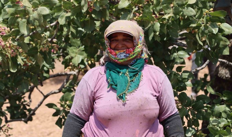 Kadın tarım işçileri, merdiven yardımıyla ağaçlardan topladıkları fıstıkları traktöre dolduruyor. Zaman zaman sıcak havadan bunalan kadınlar, kısa molalarla ağaç gölgelerinde dinleniyor. Sıcak havada çalışmanın çok zor olduğunu söyleyen kadın işçilerden 65 yaşındaki Döne Takıl, “Sabah saat 06.30’da tarlaya geliyoruz, akşam 17.00’ye kadar çalışıyoruz. Sıcak hava bizi çok bunaltıyor. Sıcaklık zaman zaman 42 dereceyi buluyor. Hava sıcak ama mecbur çalışıyoruz. Ekmeğimizi bu şekilde kazanıyoruz. Ailemin geçimini sağlamak için sıcakta çalışıyorum. Her gün fıstık toplamaya geliyoruz” dedi.