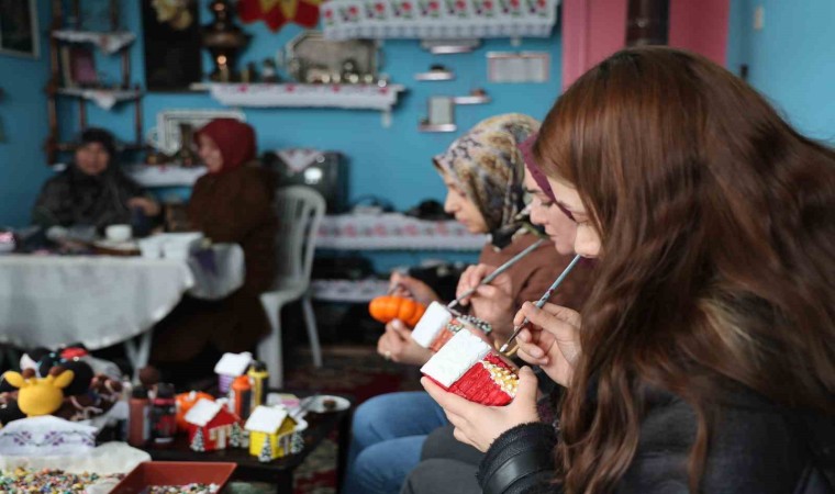 Elazığ’da kadınlar, Halk Eğitimi Merkezi Harput Sergi Salonu’nda bir yandan üretirken diğer yandan da ürettiklerini satarak aile ekonomilerine katkı sağlıyor.
