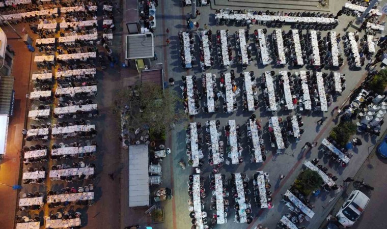 İlçenin Cumhuriyet Meydanı ve çevresindeki cadde, sokaklar masalar ile donatılarak iftar yapıldı.