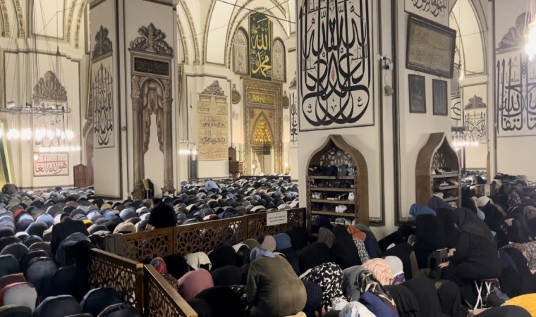 Bursa’da bin aydan daha hayırlı olan Kadir Gecesi’nde binlerce kişi Ulu Camii’ne akın etti.