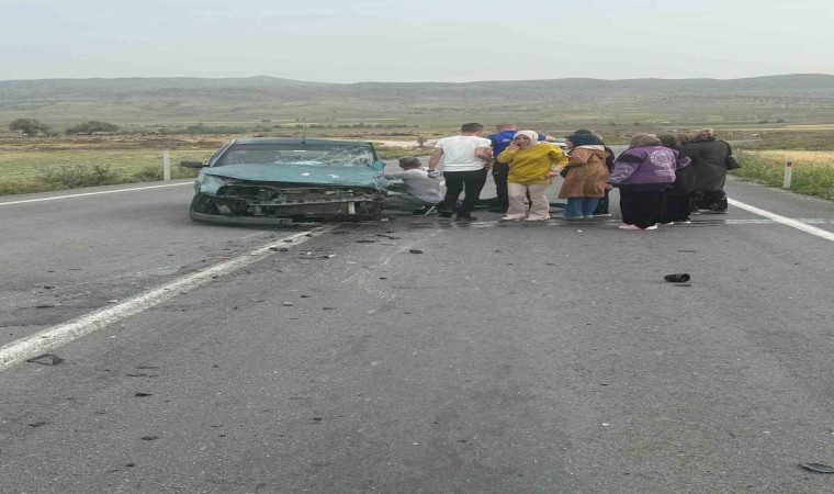 Afyonkarahisar’da kafa kafaya çarpışan iki otomobilin sürücüleri yaralandı.