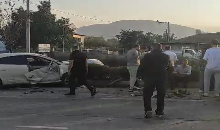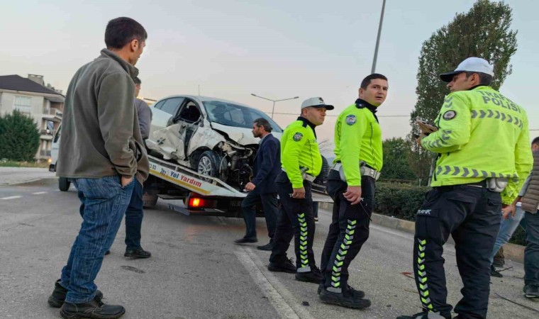 Bursa’nın İnegöl ilçesinde orta refüje çarptıktan sonra savrulan otomobil, karşı yönden gelen minibüse çarparak durabildi.