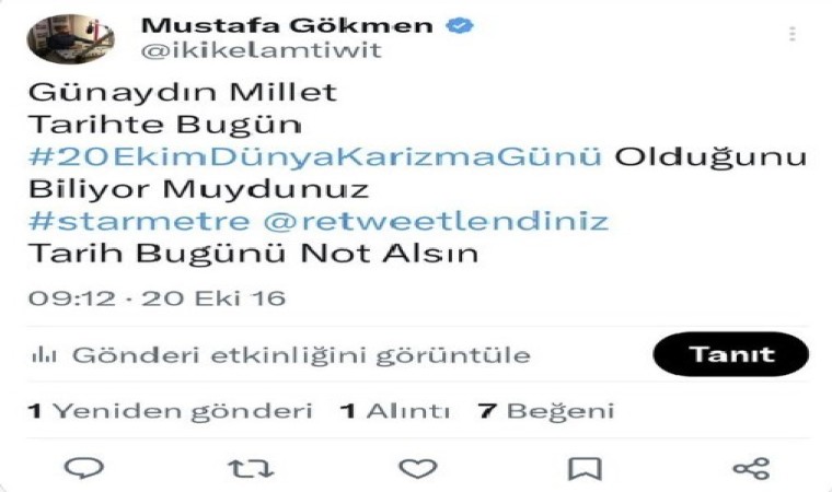 İlk kez 2016 yılında ‘Dünya İyilik Günü’ ile başlattığı özel günlere yenilerini ekleyen Mustafa Gökmen; ‘Dünya Karizma Günü’, ‘Dünya Çiçek Verme Günü’, ‘Kilo Verme Günü’ gibi birbirinden farklı günler icat etmeye devam ediyor. Dünya TT listesine ilk sıralardan giren özel günlerle ilgili binlerce paylaşım yapılıyor. Ünlüler, siyasiler ve sosyal medya kullanıcıları tarafından büyük ilgi gören özel günler akımını başlatan Gökmen, gün belirlemeye başladığında bu kadar ilgi göreceğini beklemediğini söyledi. Gökmen; "İyilik günü’ yoktu ben de neden yok diye bir paylaşım yaptım ve gündem oldu. Çok farklı günler yaptım. ’Dünya Bekarlar Günü’, ’Dünya Karizma Günü’, ’Gıybet Günü’, ’Çiçek Verme Günü’, ’Özür Dileme Günü’, ’Sabır Günü’ gibi. Bu kadar çok ilgi göreceğini beklemiyordum. Dünya gündeminde 5. sıradan girmeye başladı. Ünlüler de çok paylaşım yaptı. Bunu kimin başlattığı bilinmiyordu aslında. İnsanlar sonra beni tanımaya başladı, takipçim yükseldi" dedi. Ünlüler tarafından da belirlediği günlerin ilgi gördüğünü söyleyen Gökmen, belirlediği günlere kızanlar olduğunu da belirtti. Gökmen; "Belirlediğim günlere kızanlar da oluyor. ‘Ablalar Günü’ yaptığımda Esra Erol ’kim icat ediyor bu günleri, bizi şartlandırmayın’ demişti. ’Yakışıklılar Gününde’ ünlüler paylaşım yapıyor. ’Dünya Kilo Verme Günü’ yaptım spor salonları paylaşım yaptı. Kimisi kızıyor, kimisi beğeniyor ’hatta şu günü de yapalım’ gibi isteklerde oluyor. Benim başlattığım çok gün olduğu için hepsini aklımda da tutamıyorum. Bazen kendi kendine TT listesine giren günler oluyor. ’Dünya Çiçek Verme Günü’ yapmıştım ve o gün çiçekçiler güzel iş yapmışlar" diye konuştu.