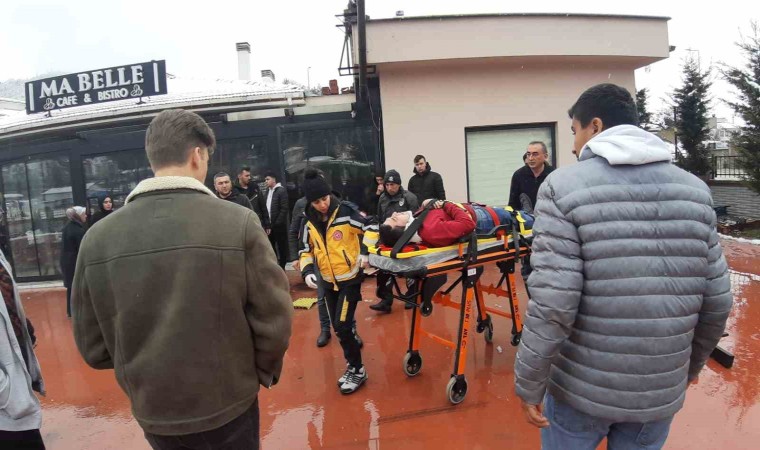 Bolu’da kafenin çatısında arızalanan baca motorunu tamir etmek için merdivenle çatıya çıkan kafe çalışanı, merdivenin kayması neticesinde yere düşerek yaralandı.