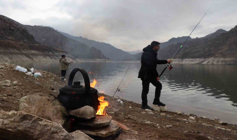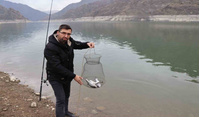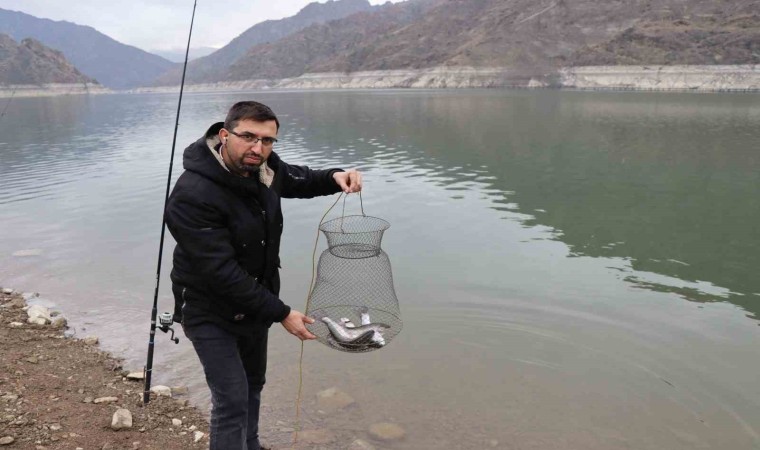 Olta ile balık tutan Fırat Aydın, “Hafta sonları baraja gelerek böyle bir etkinlik yapıyoruz bizim için sosyal bir faaliyet oluyor bugün şanslı günümdeyim dört adet alabalık tuttum, nasip olursa poşetimizi doldurup gideceğiz” dedi.