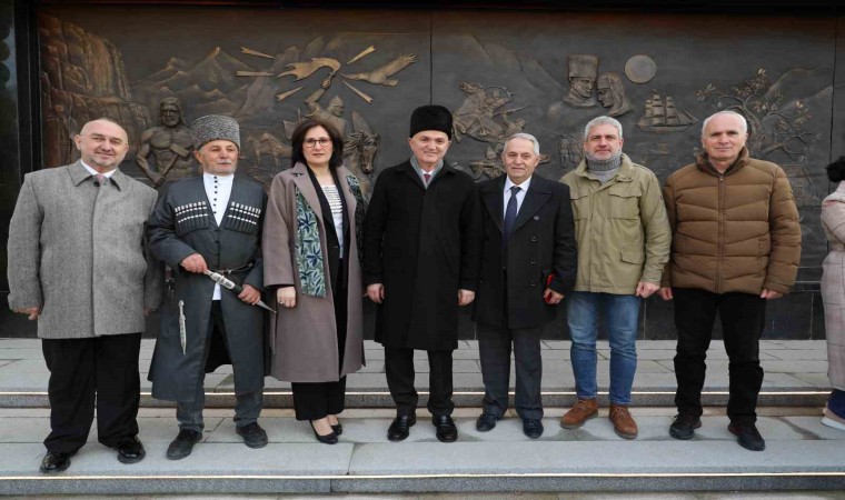 Kafkas Anıtı inşasında imkan ve olanakları seferber ederek eserin Düzce’ye ve Kafkas halklarına kazandırılmasını sağlayan Düzce Belediye Başkanı Dr. Faruk Özlü’ye plaket takdim ederek teşekkür etti.