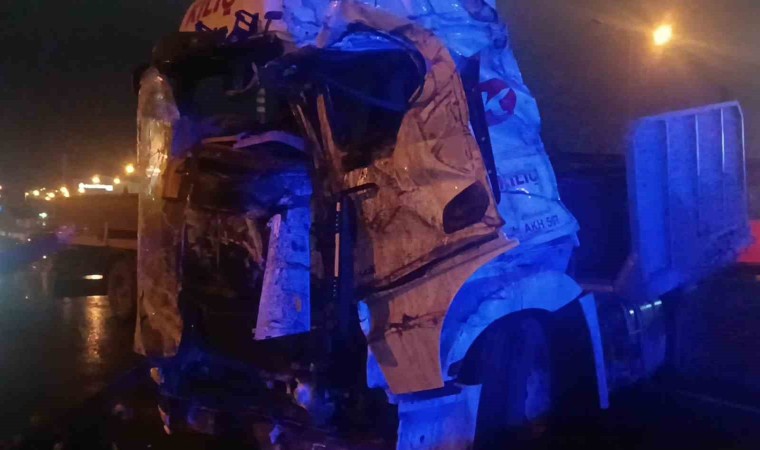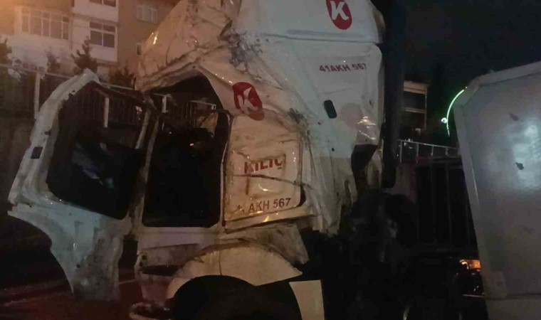 Kocaeli’nin Dilovası ilçesinde sürücüsünün direksiyon hakimiyetini kaybettiği tır, önce orta refüje ardından duvara çarparak durabildi. Kazada tırın kabini ezilirken sürücü hafif yaralı olarak, arkadaşı ise yara almadan araçtan kendi imkanları ile çıktı.