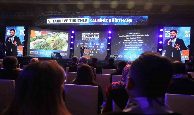 Kağıthane Belediye Başkanı Mevlüt Öztekin, 2024-2029 dönemi projelerini anlattığı ve Cumhur İttifakı belediye meclis üyesi adaylarını tanıttığı toplantıda, “Sayın Cumhurbaşkanımızın açıkladığı gerçek belediyecilik ilkelerini buradan bir kez daha tanıtmak istiyoruz. Bir dirençli şehirleşmeyle kalbimiz Kağıthane diyoruz. İki, ulaşımla kalbimiz Kağıthane diyoruz. Üç, yeşiliyle, dört teknolojisiyle, beş tarihi ve turizmiyle, altı yaşam alanlarıyla, yedi kültür ve sanatla, sekiz sağlık ve sporla, dokuz sosyal belediyecilikle kalbimiz Kağıthane diyerek çalışmalarımızı şekillendiriyoruz” dedi.