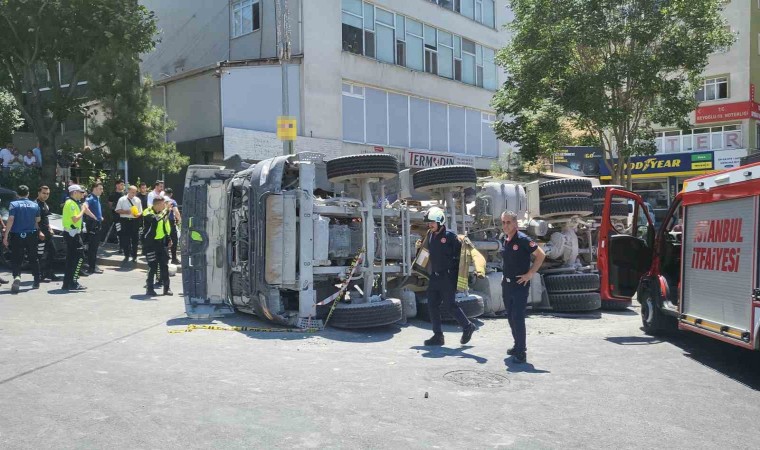 Olay anı güvenlik kameralarına da yansıdı. Görüntülerde hızla ilerleyen beton mikseri, virajı alamayarak devriliyor. Çevredekiler kazanın ardından olay yerine koşuyor.