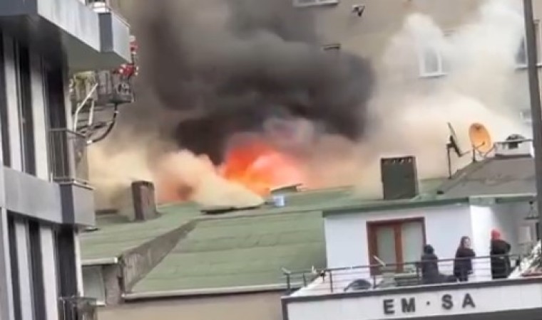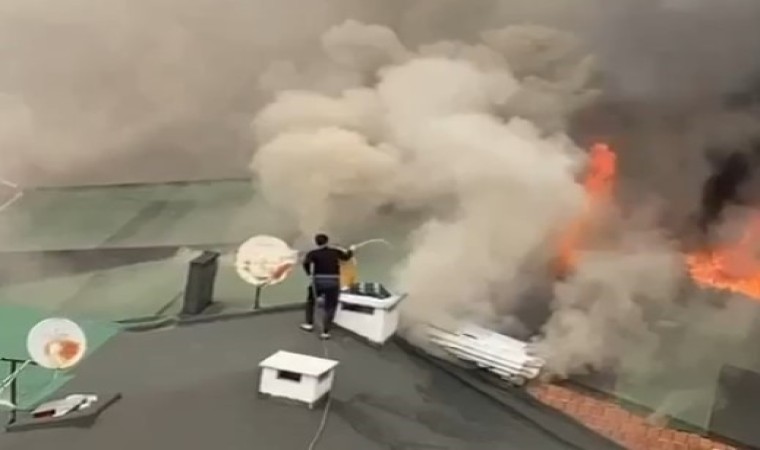 Kağıthane’de bir binanın çatı katında çıkan yangın kısa sürede alevlere teslim oldu. İtfaiye ekiplerinin söndürme çalışmalarına ise bir vatandaş diğer binanın çatısından bahçe hortumuyla söndürmeye çalıştığı o anlar kameraya yansıdı.