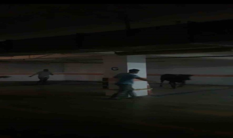Kağıthane’de sahibinin elinden kaçan kurbanlık boğa otoparka girdi. Dakikalarca sahibiyle köşe kapmaca oynayan boğa, ekiplere zor anlar yaşattı. Uyutucu iğne ile bayıltılan boğa güçlükle ele geçirildi. Yaşananlar kameralara yansıdı.