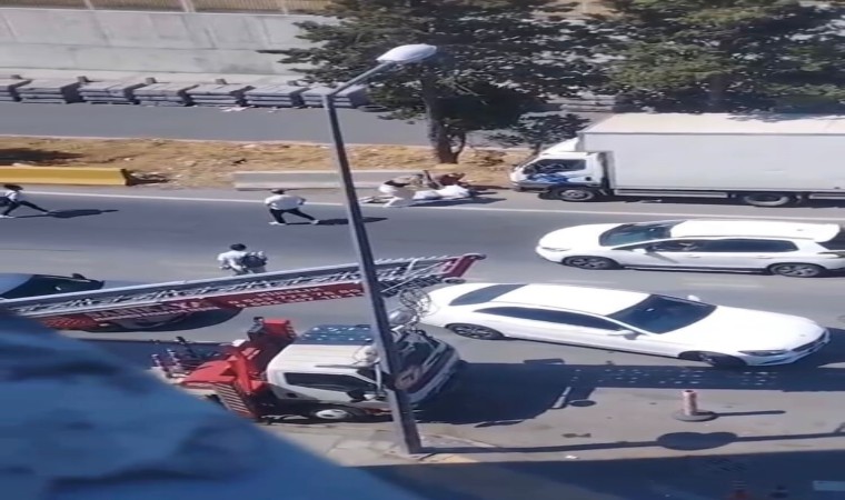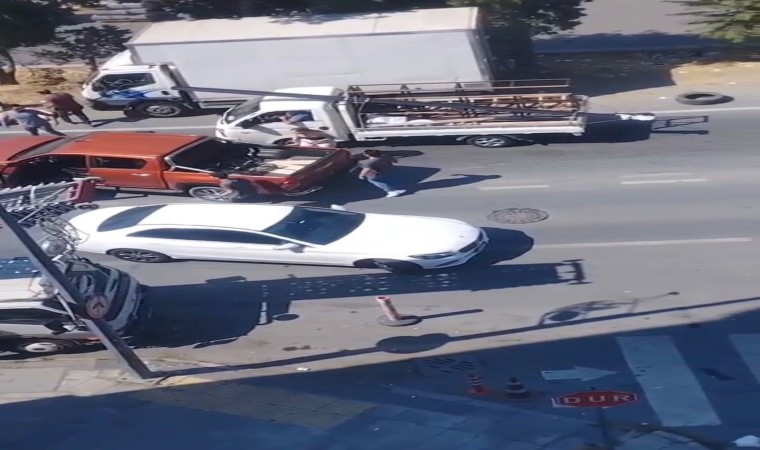 Sürücülerden birinin diğer sürücünün yanında bulunan kadına yumruk atmasının ardından arbede çıktı. Arbede sırasında şahıs bu sefer diğer sürücüyü de yumruğuyla yere devirdi. Yaşananların ardından şahıs aracına binerek kaçarken, kadın kısa süre aracın peşine koşmaya çalıştı. Çevredeki vatandaşlar, kavganın ardından polis ve sağlık ekiplerine haber verdi. Kavga anı vatandaşların cep telefonu kamerasına saniye saniye yansıdı.